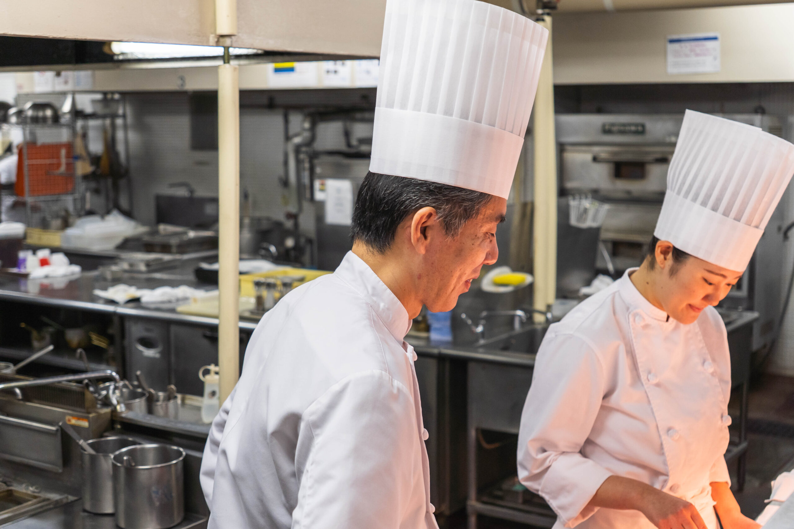 現在は前菜とデザートをメインに担当しています。オーダー対応や発注・仕込み、在庫管理などの業務を担当しています。最近ではパスタ場に入ることもあり、オーダー対応や自家製パスタの仕込みなどをしています。ほぼゼロからのスタートだったので初めはたくさんの不安がありました。しかし、最初にドルチェ場からスタートしたことで、学校で学んだ製菓の知識を使いながら早く理解することができました。まだまだ初めてのことがたくさんある中で、一つ一つ出来るようになり、成長できることが嬉しいです。
