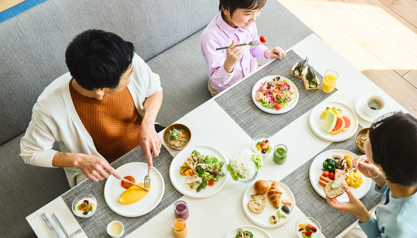 大きな窓から降り注ぐ日差しが印象的なオールデイダイニング。